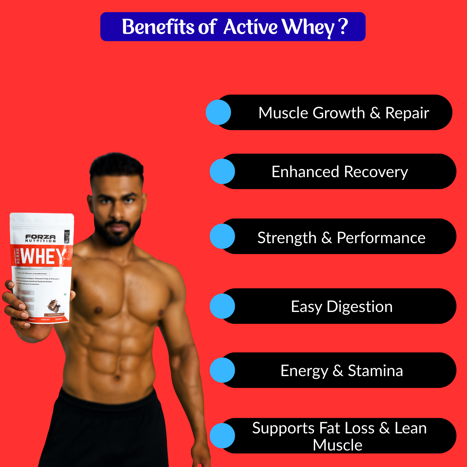 Active Whey Protein – Premium Muscle Recovery & Growth Formula | 22g Protein + 5.2g Glutamine Per Serving