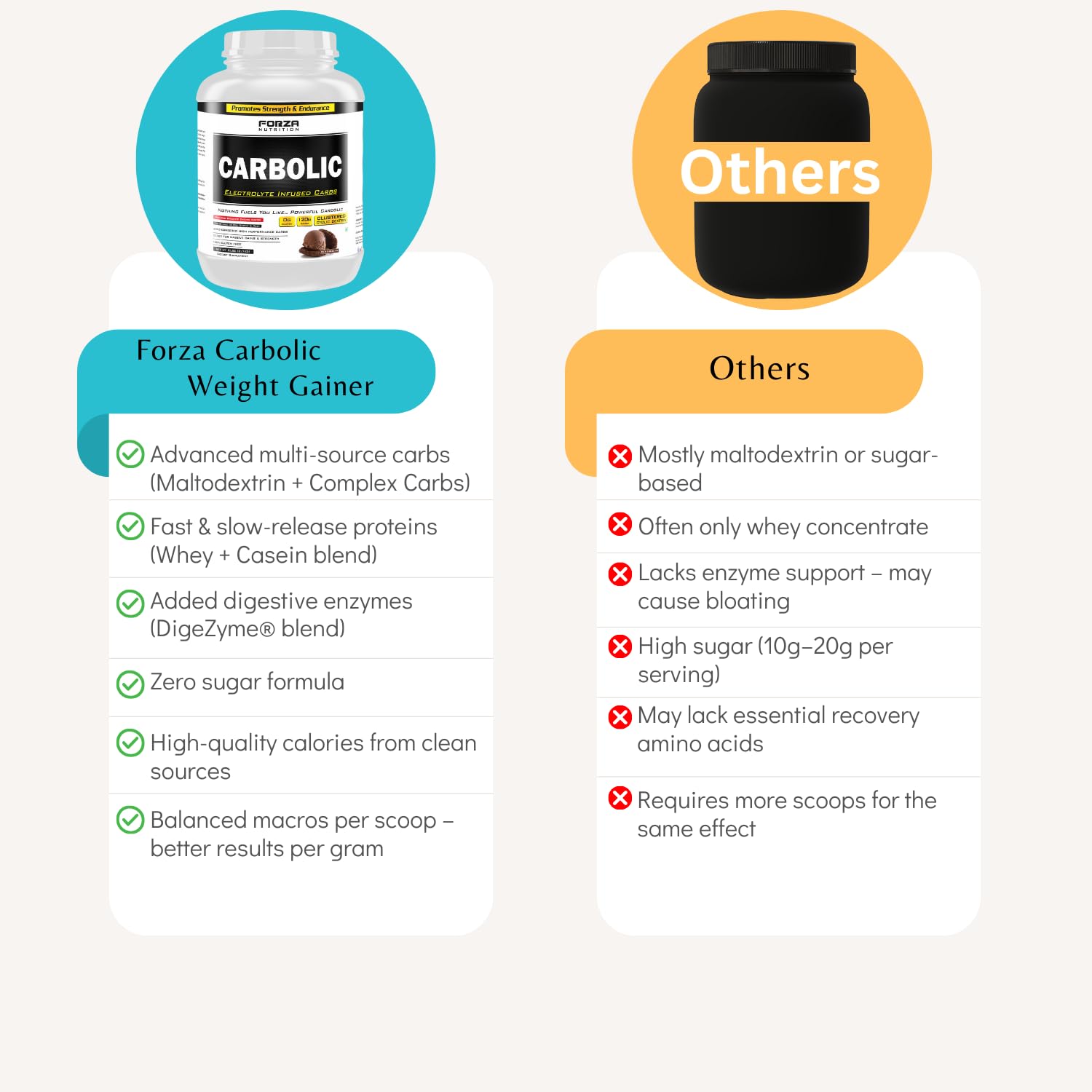 It is more readily absorbed and easily digested. Designed for serious athletes, CARBOLIC fuels your body with the freshest carbs available: granulated medium-length complex carbs (glucose polymers) extracted from selected grain sources and maltodextrin.